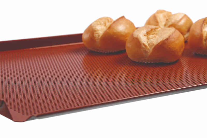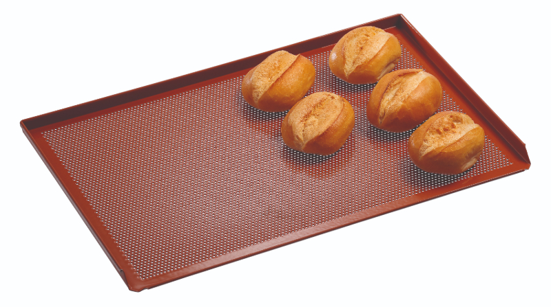 Blacha perforowana z powłoką silikonową to praktyczne i bardziej ekologiczne rozwiązanie do profesjonalnego pieczenia – bez potrzeby używania papieru lub folii. Perforacja 3 mm zapewnia świetną cyrkulację powietrza, dzięki czemu potrawy równomiernie się pieką i opiekają, nawet przy dużym obciążeniu. Wykonana z aluminium o grubości 1,5 mm, jest stabilna i odporna na temperatury do 260°C, a nieprzywierająca powłoka ułatwia utrzymanie higieny. 3-stronna krawędź zwiększa bezpieczeństwo podczas wkładania, wyjmowania i transportu wypieków.