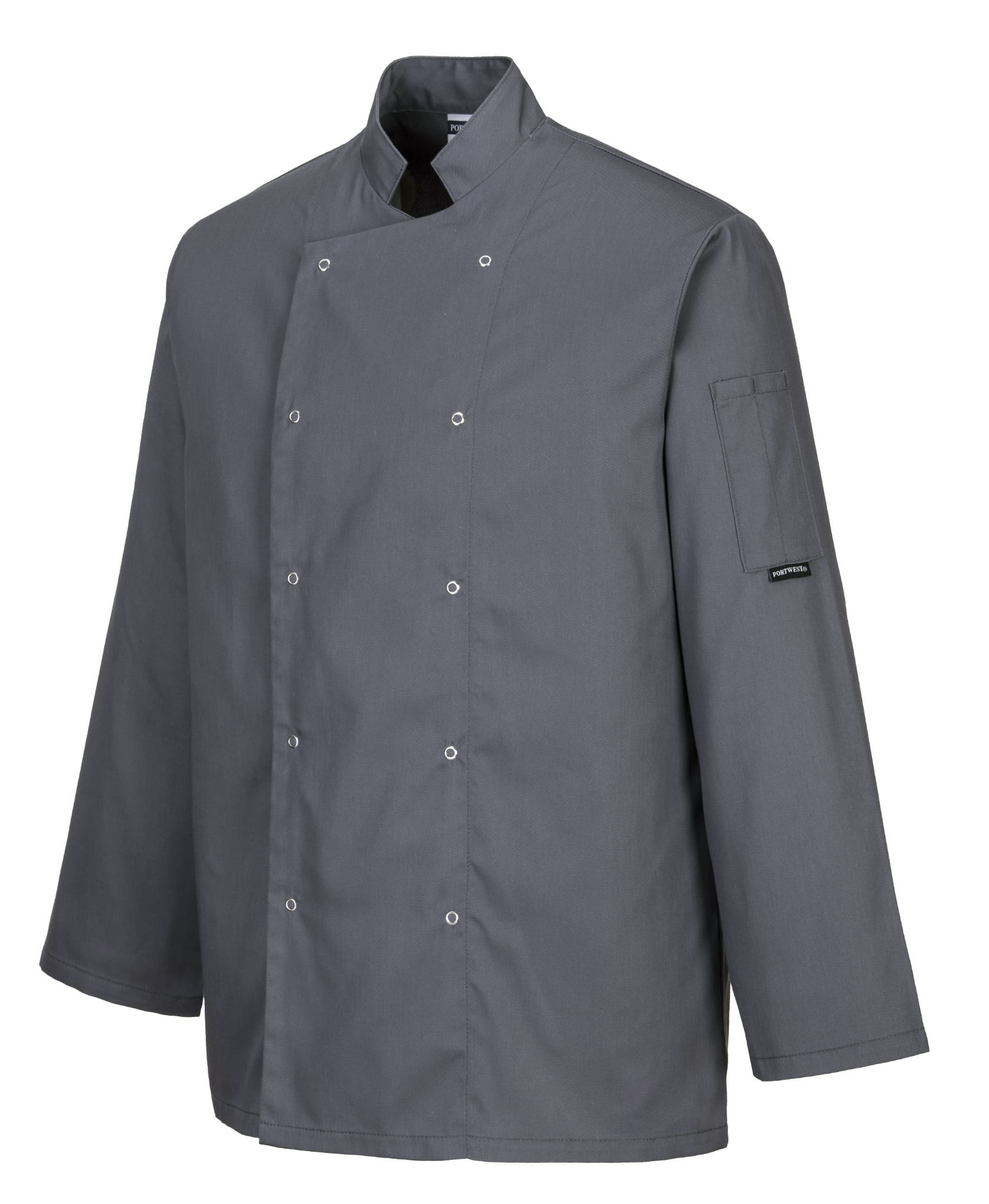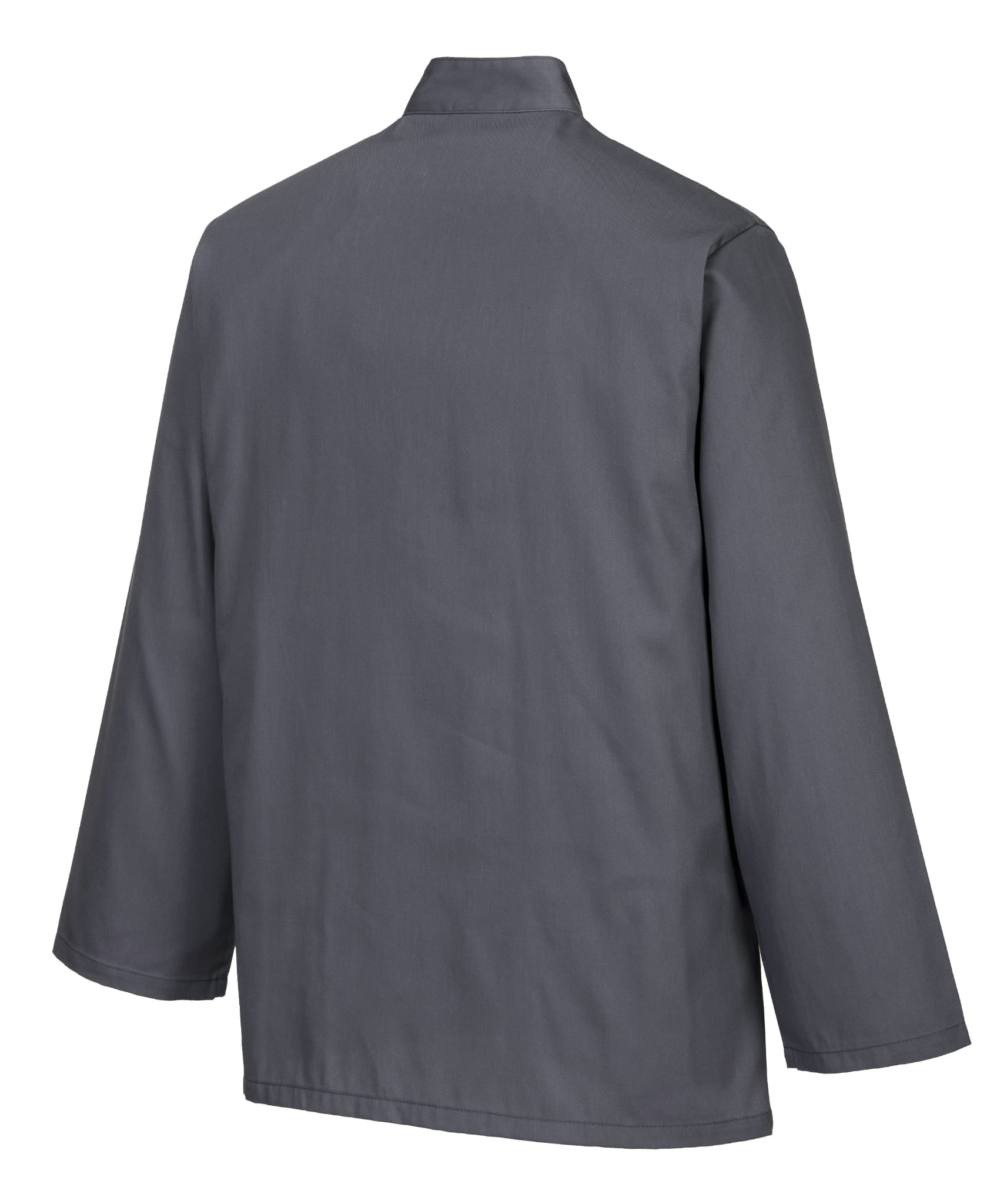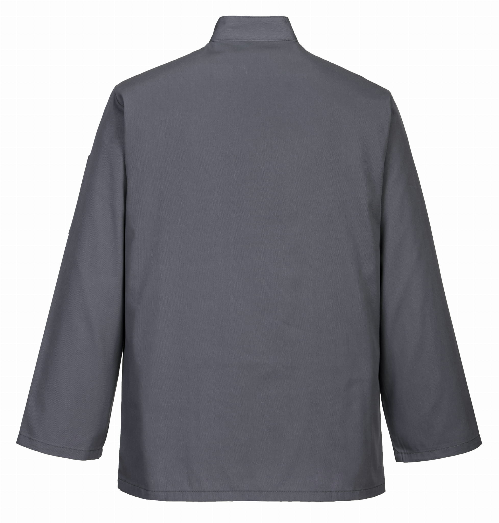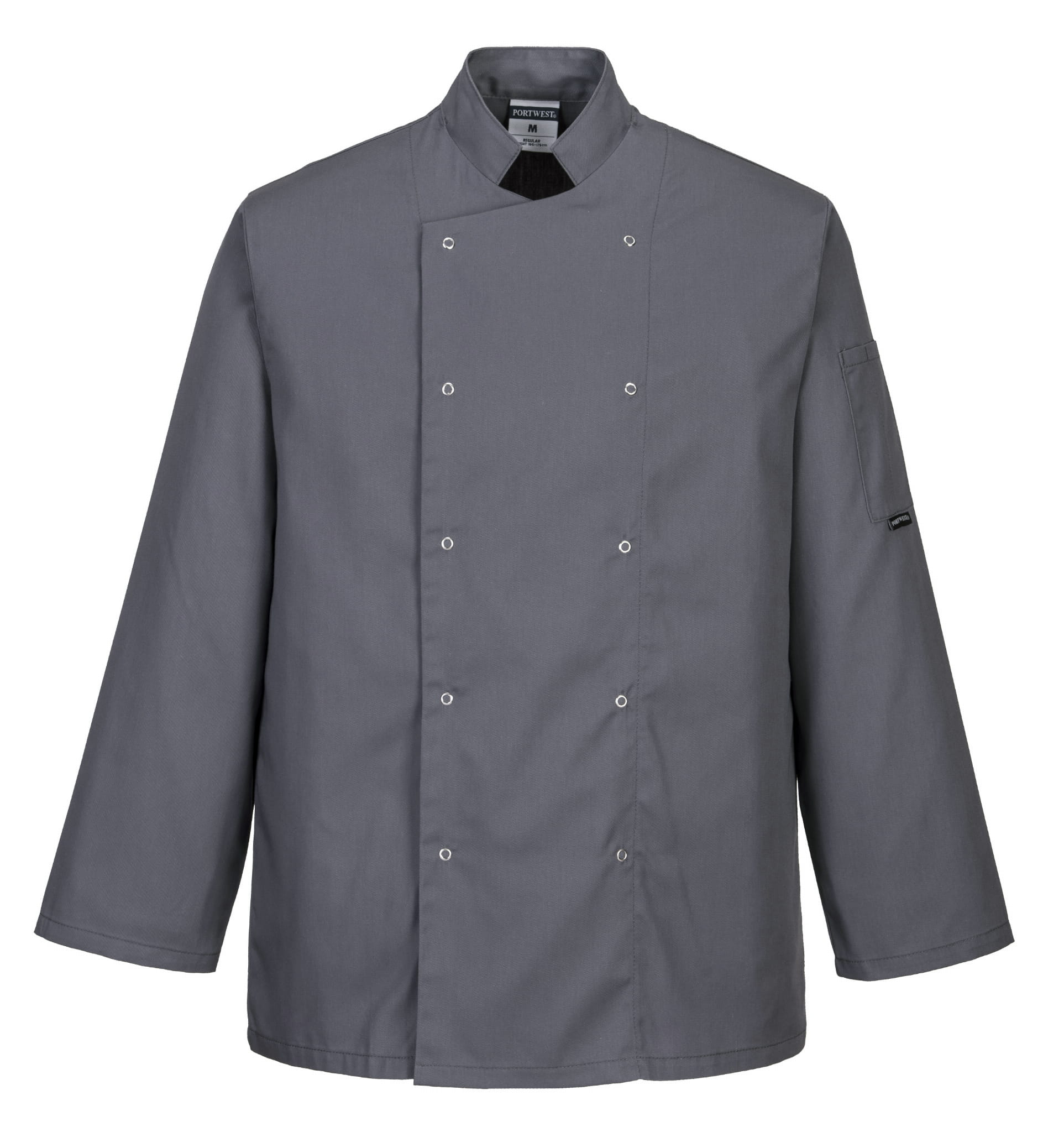 Bluza Szefa Kuchni w szarym kolorze marki Portwest. Kitel kucharski posiada wygodne zapięcie na napy, długi rękaw oraz jedną bezpieczną kieszeń. Produkt wykonany jest z wysokiej jakości tkaniny o skośnym splocie, odpornej na odbarwienia. Dodatkowo wykurczona tkanina zapewnia zachowanie rozmiaru nawet po wielu praniach. Uniwersalny krój unisex polecany jest zarówno dla kobiet jak i mężczyzn. Bluzy Suffolk dostępne są w trzech kolorach: białym, czarnym oraz szarym.