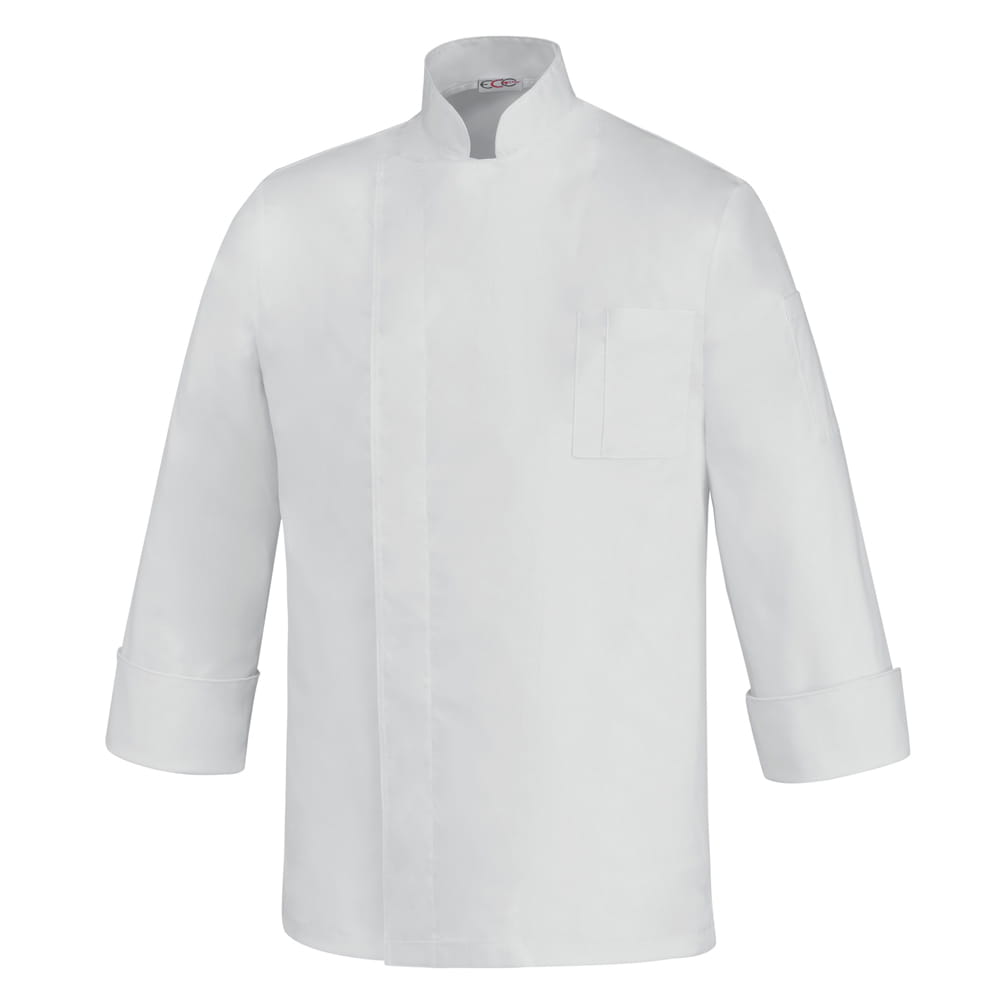 Profesjonalna bluza kucharska z tkaniny Sorona® została zaprojektowana z myślą o wymagającej pracy w gastronomii. Fason z długim rękawem, stójką oraz mankietami podkreśla profesjonalny charakter odzieży, a zapięcie na napy ukryte pod listwą materiału pomaga zachować schludny wygląd przez cały dzień. Praktyczna kieszeń na lewym rękawie oraz kieszeń z przodu zapewniają miejsce na drobne akcesoria potrzebne podczas pracy. Bluza jest lekka, wygodna i mniej podatna na zagniecenia, co sprzyja utrzymaniu estetycznego wyglądu w trakcie intensywnych zmian.