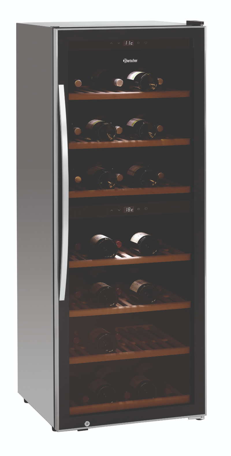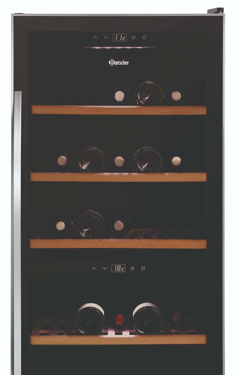 Wysokiej jakości chłodziarka do wina – dzięki stylowemu i eleganckiemu designowi oraz cichej pracy sprężarki – doskonale nadaje się do barów i restauracji.