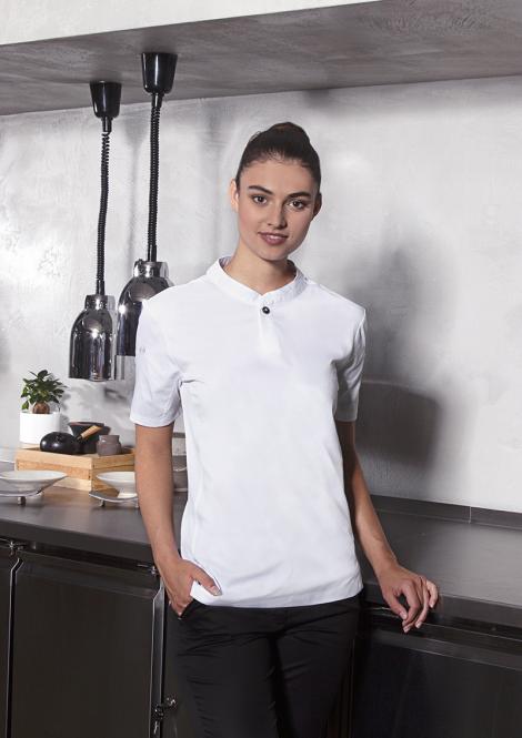 Nowoczesna koszula damska marki Karlowsky. Koszula z krótkim rękawem jest idealna do pracy w obszarze zaplecza kuchennego. Taliowany fason, szyja ze stójką, kieszeń na lewym rękawie oraz zapięcie na guziki. Tył wykonany z jerseyowej piki dla zachowania wentylacji oraz swobody ruchów. Koszula damska Performance dostępna jest w kilku kolorach.