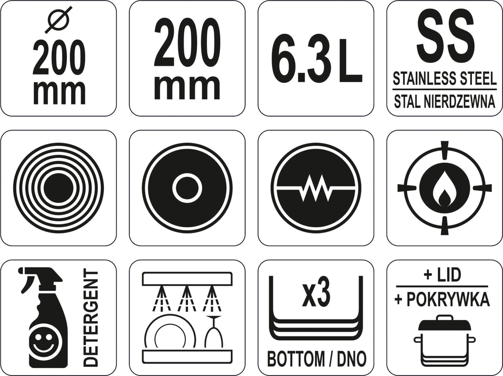 Garnek wysoki z pokrywką ze stali nierdzewnej 20x20cm 6,3l (YG-00002)