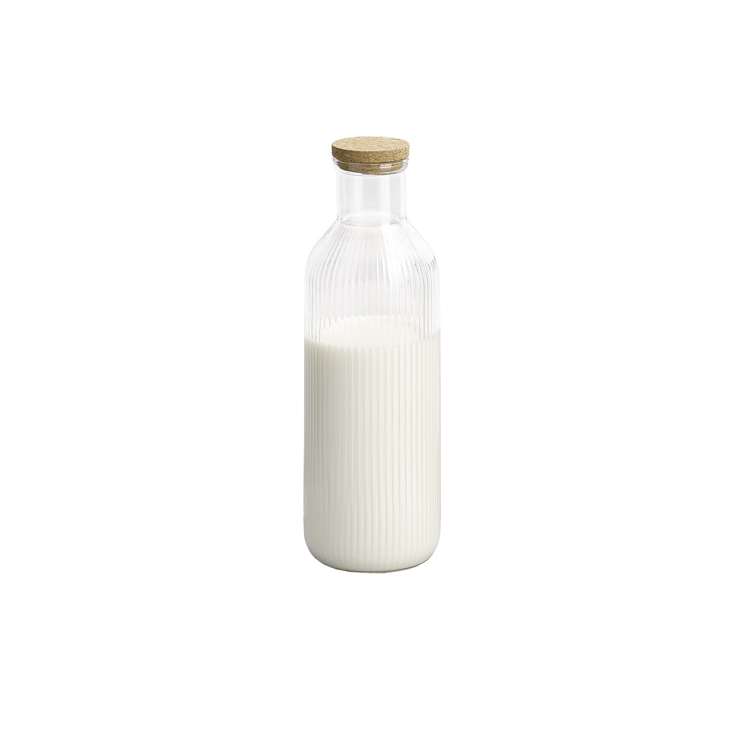 Karafka szklana, ryflowana z korkowym zamknięciem, poj. 1l.
