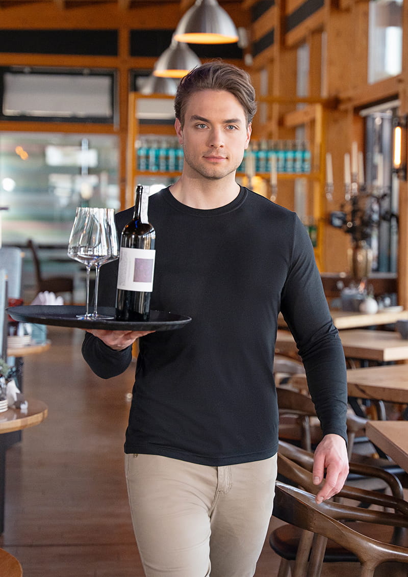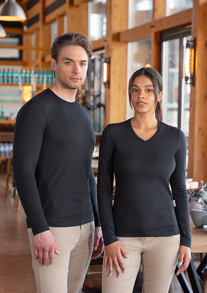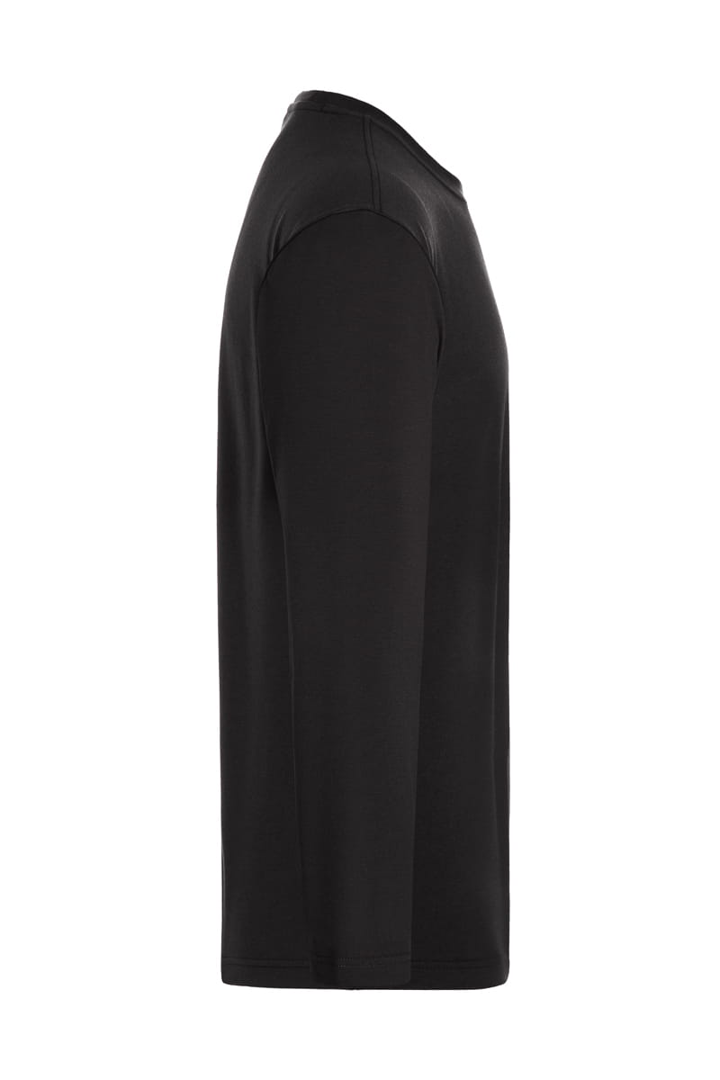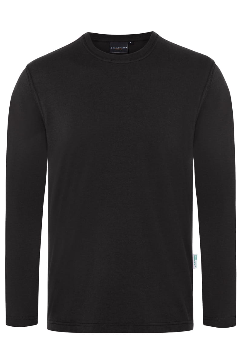 Czarna koszulka z długim rękawem Casual-Flair to uniwersalny element garderoby, który sprawdzi się zarówno jako odzież służbowa, jak i ubranie na co dzień. Uszyta z miękkiego single jersey o gramaturze 170 g/m², przyjemnie układa się na ciele i nie krępuje ruchów.
