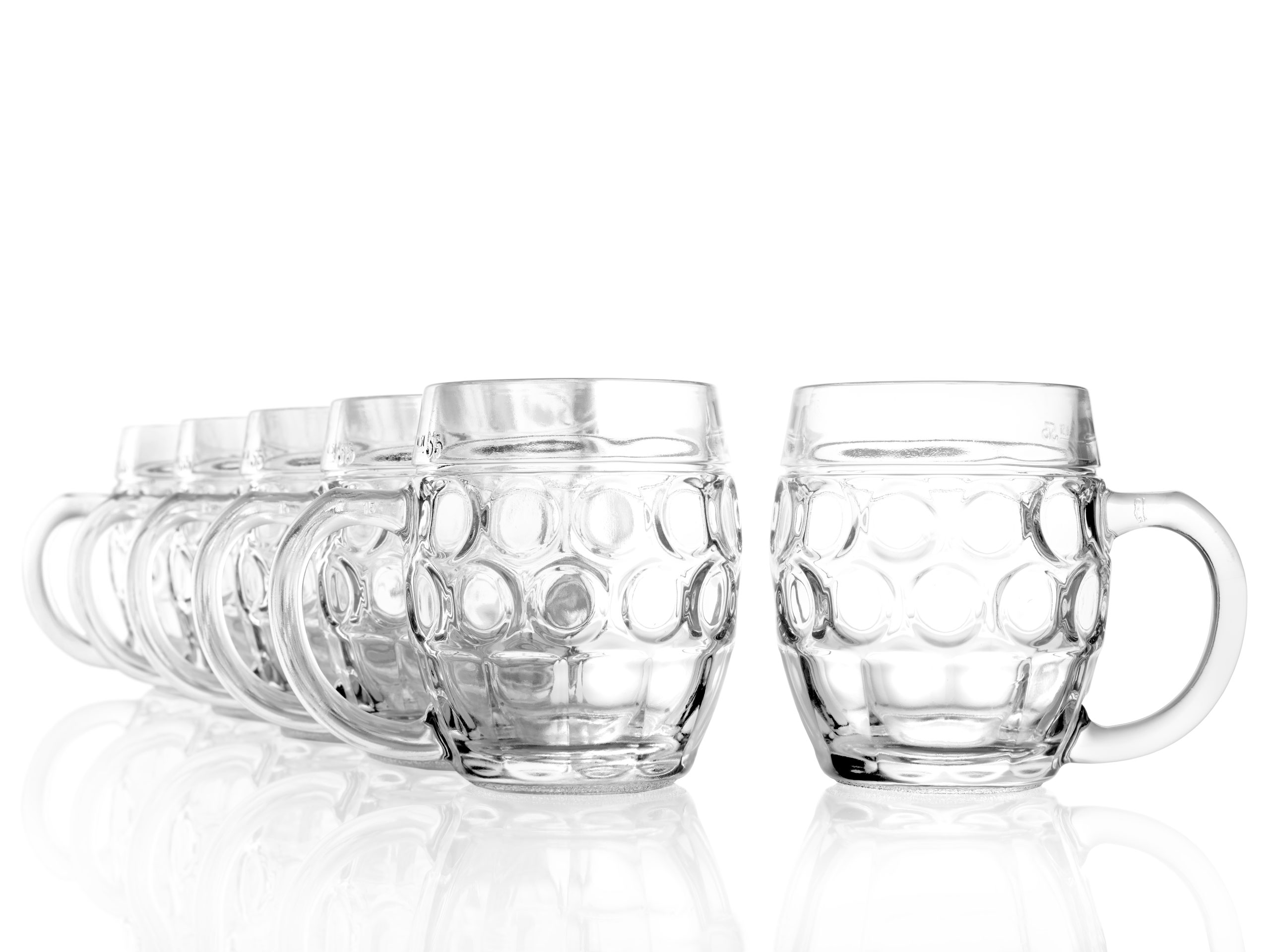 Kufel o baryłkowatym kształcie wykonany z grubego, zdobionego szkła to idealne naczynie do podawania piwa. Masywny kufel jest stabilny, posiada wygodne ucho do trzymania.