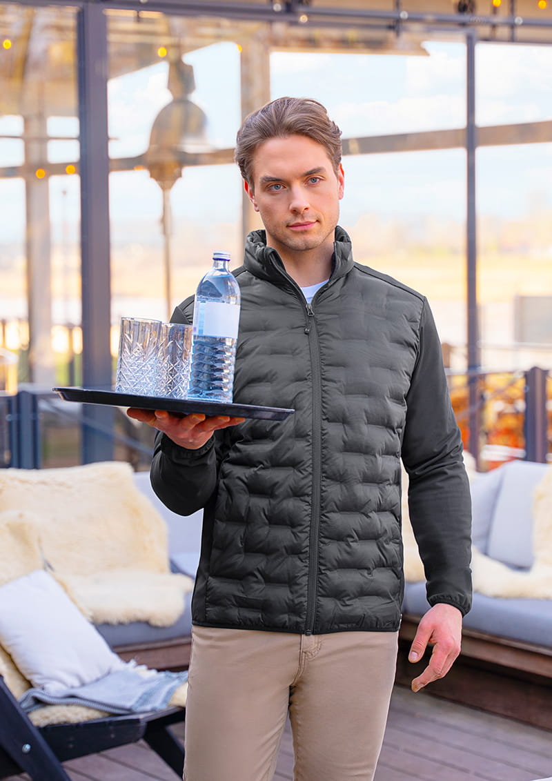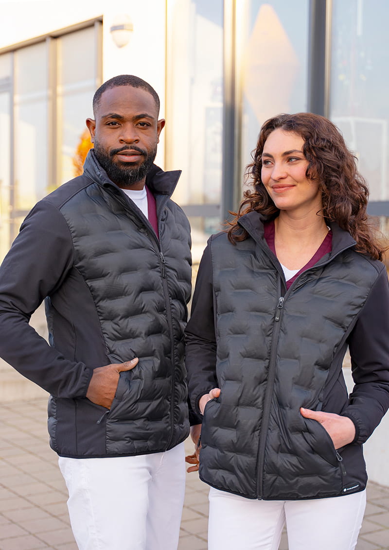 Lekka i funkcjonalna kurtka hybrydowa Outdoor-Pro została zaprojektowana z myślą o osobach, które potrzebują połączenia ciepła, swobody ruchów i nowoczesnego, profesjonalnego wyglądu. Z zewnątrz przypomina pikowaną kurtkę, od wewnątrz daje przyjemne odczucie miękkiego polaru. Dzięki ultradźwiękowemu łączeniu warstw pozbawiona jest klasycznych przeszyć igłowych, co ogranicza powstawanie mostków termicznych i poprawia odprowadzanie wilgoci.