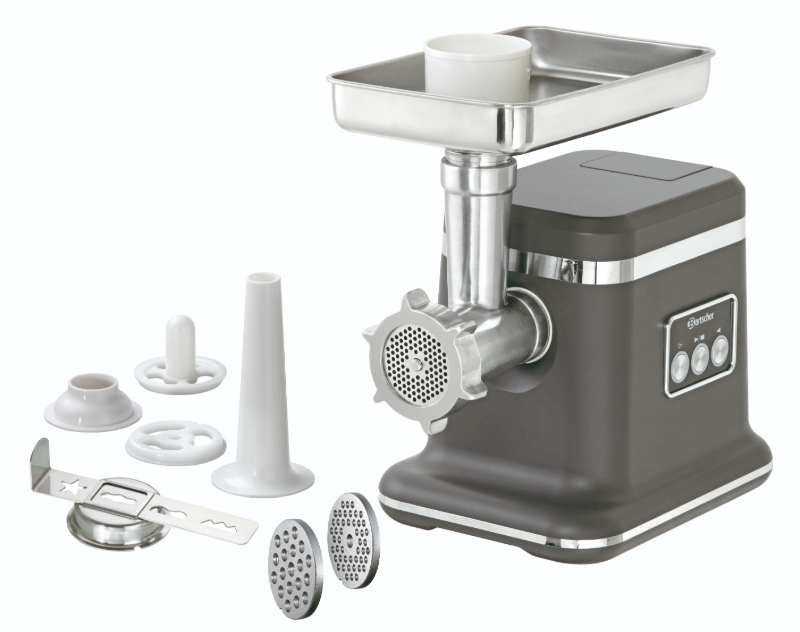 - W zestawie;1 nóż ze stali szlachetnej, 4-ramienny ,1 nasadka do przygotowywania "kebbe" (potrawa orientalna) ,1 przystawka do ciastek ,1 dociskacz ,1 nasadka do napełniania kiełbas ,3 tarcze perforowane (3 mm, 4,8 mm, 8 mm)