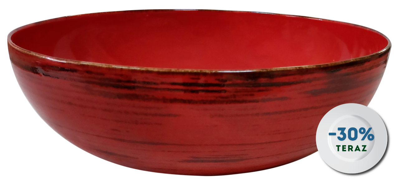 Porcelanowa misa o średnicy 24cm z kolekcji Nostalgia. Wyjątkowo ciepły odcień czerwieni z delikatnymi przetarciami tworzy efekt naczynia w stylu retro. Produkt marki Porcelana Bogucice, wiodącego producenta porcelany stołowej od 1925 roku. W ramach kolekcji dostępne są także talerze deserowe, płytkie, głębokie oraz filiżanki. Zestaw nadaje się do stosowania w zmywarce oraz mikrofalówce.