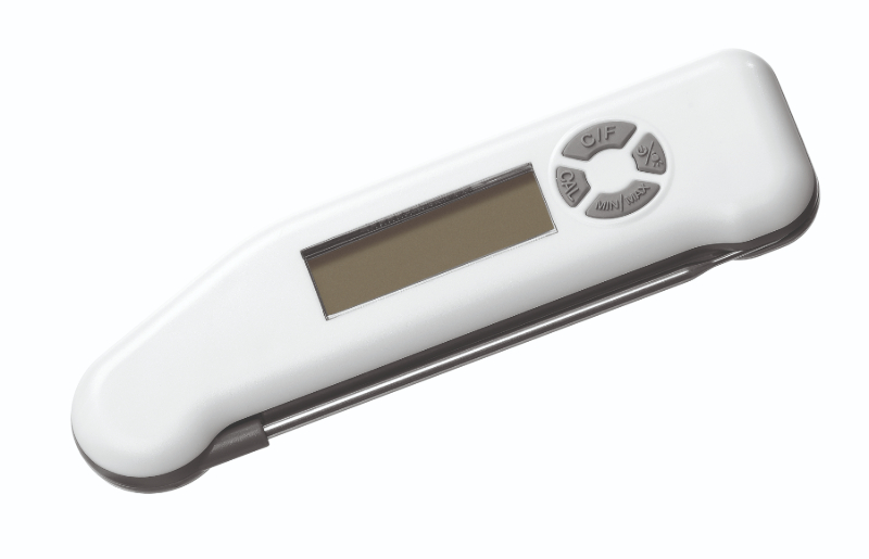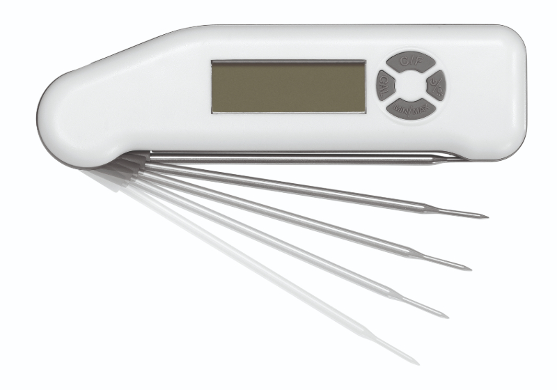 Wodoszczelny termometr z rozkładaną bagnetową sondą temperatury. Duży zakres pomiaru temperatury od -40°C do +300°C przemawia na korzyść produktu podobnie jak podświetlany wyświetlacz i pamięć min./maks.
