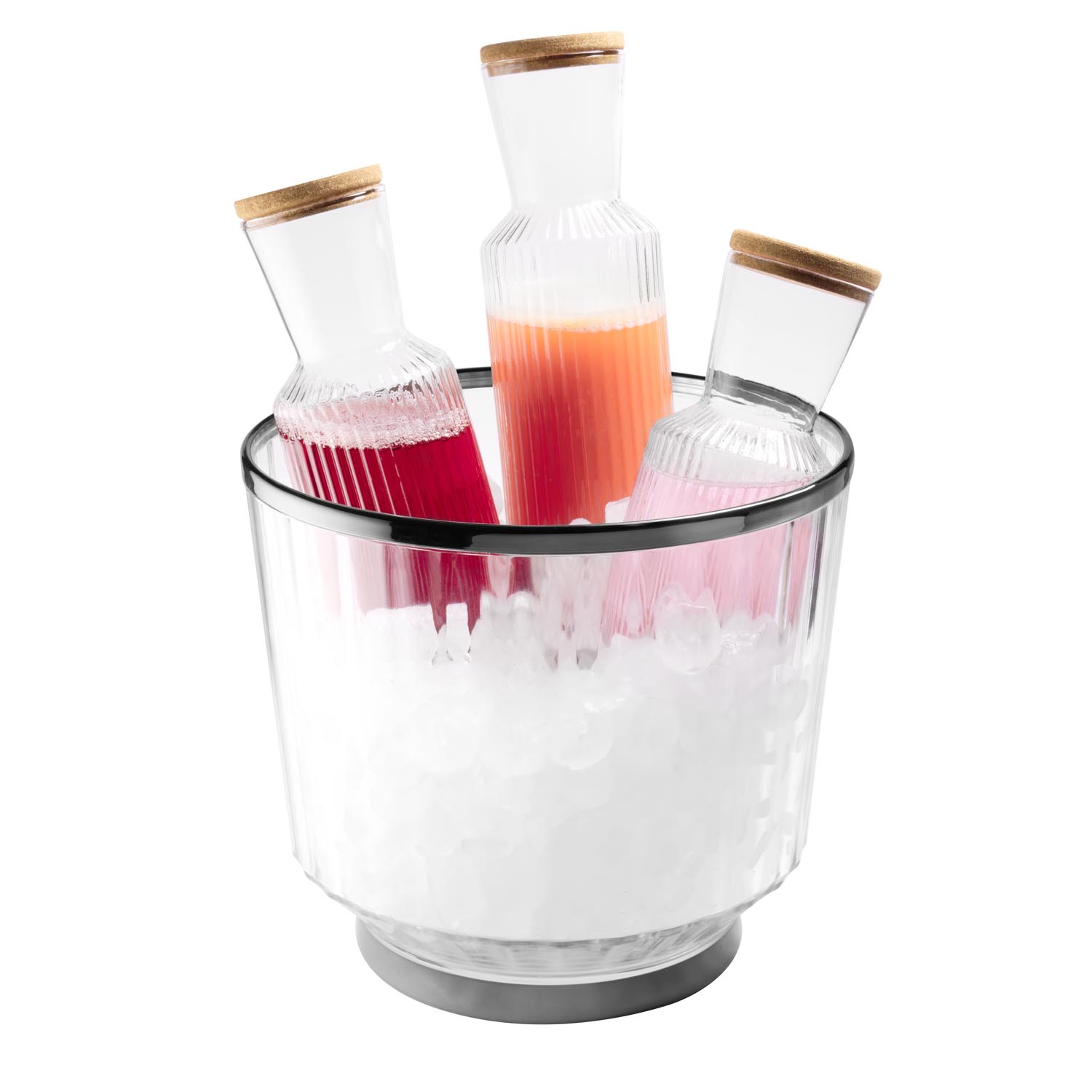Stylowy, nowoczesny pojemnik do chłodzenia napojów w butelkach. Produkt marki APS, Wykonany z połączenia tworzywa sztucznego i stali nierdzewnej 18/8. Zaleca się mycie ręczne.