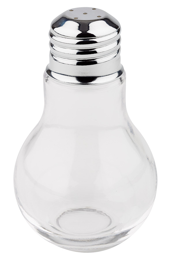 Oryginalny zestaw przyprawników przypominających kształtem żarówkę. Komplet zawiera dwie sztuki, na sól i pieprz. Produkt wykonany jest ze szkła oraz stali nierdzewnej.